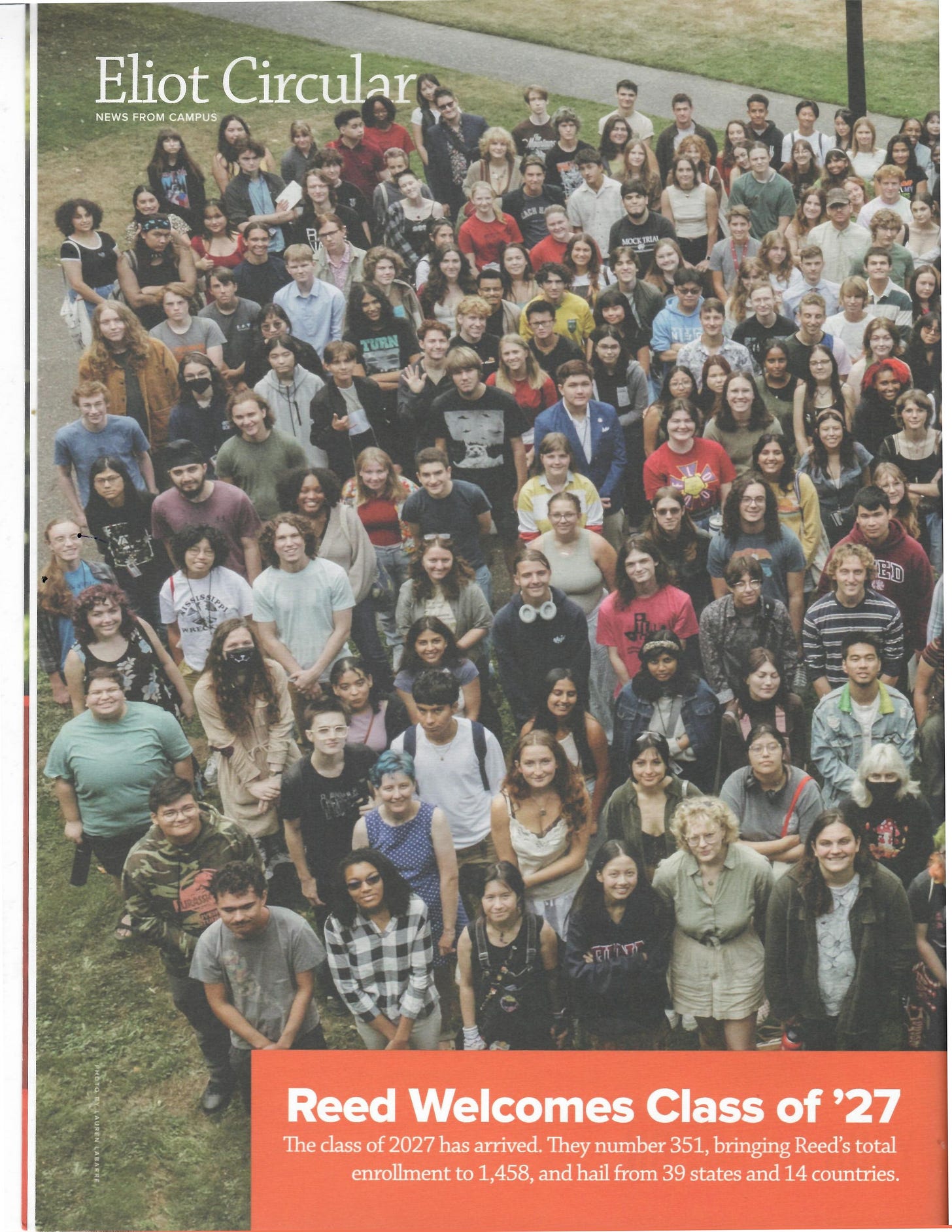 I still get the Reed College magazine. It's a barometer of what's going on in more selective private universities. Here's what I see. On the inside cover they welcome the entering freshman class: